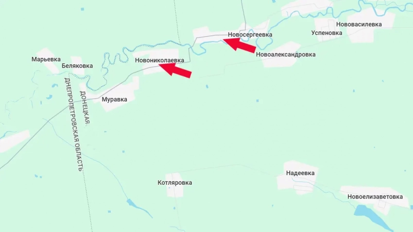 К вечеру среды поступают сведения о том, что ВСУ потеряли контроль и над большей частью села Новониколаевка, что на стыке в той самой Днепропетровской областью. Соответственно, практически весь южный берег реки Солёная, за исключением участка у села Муравка, теперь под контролем российских Вооружённых сил.
