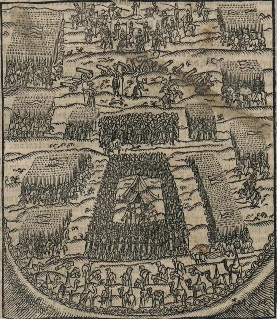 Изображение ставки Мурада в битве при Варне в хронике Марцина Бельского, издание 1597 года
