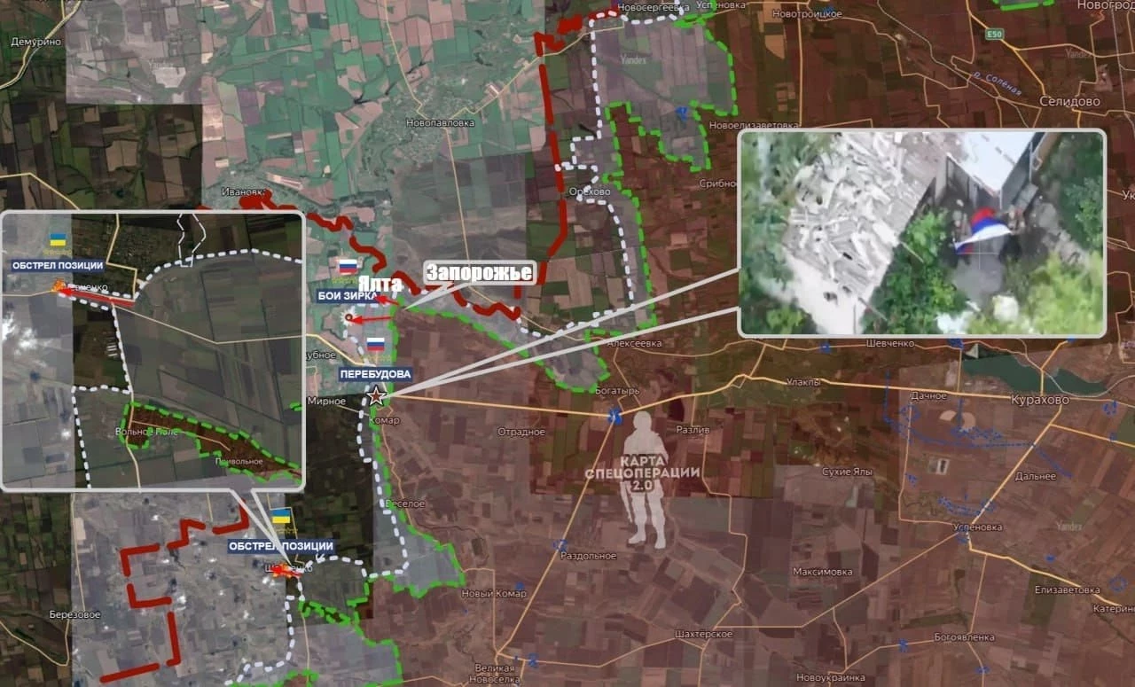 На Угледарском направлении ВС РФ развивают наступление. Так, опираясь на Комар, наши пробиваются к Днепропетровской обл. Сегодня российские штурмовики освободили посёлок Перебудова. Нашим бойцам потребовалось всего три дня, чтобы форсировать реку Мокрые Ялы и установить контроль над посёлком. Севернее по фронту наши продвигаютя в районе Ялты и к Поддубному, а южнее – охватывают Шевченко уже и с севера, к Воскресенке приближаются с востока. Южнее Шевченко, из района Зелёного Поля, наши атакуют по направлению Камышевахи.