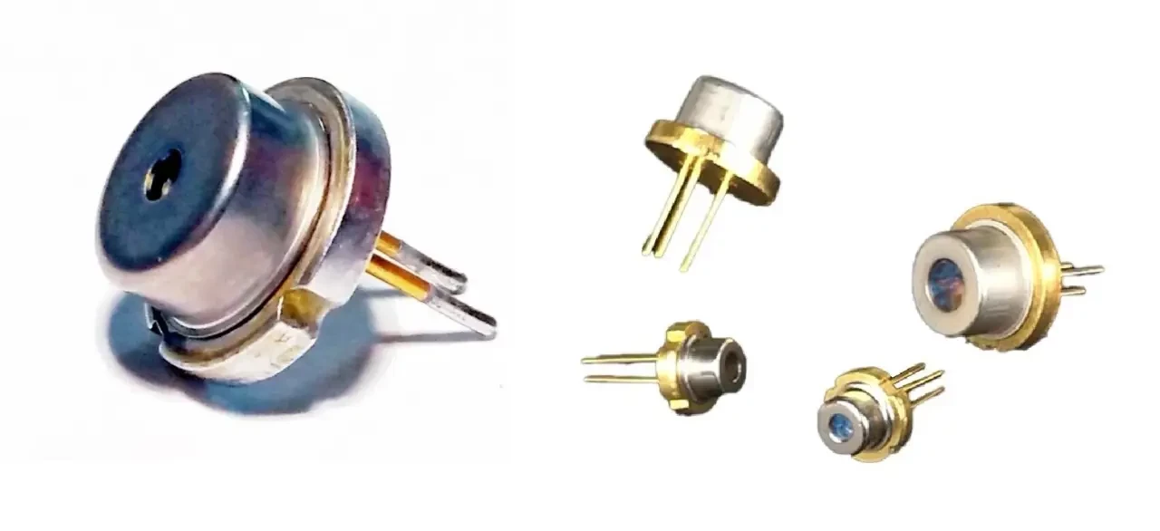 Лазерный диод NICHIA NUBM47A1 мощностью 8 Вт с длиной волны 445 нм и лазерные диоды TO808DL10 By Hangzhou Technology мощностью 10 Вт с длиной волны 808 нм (масштабы не соблюдены)