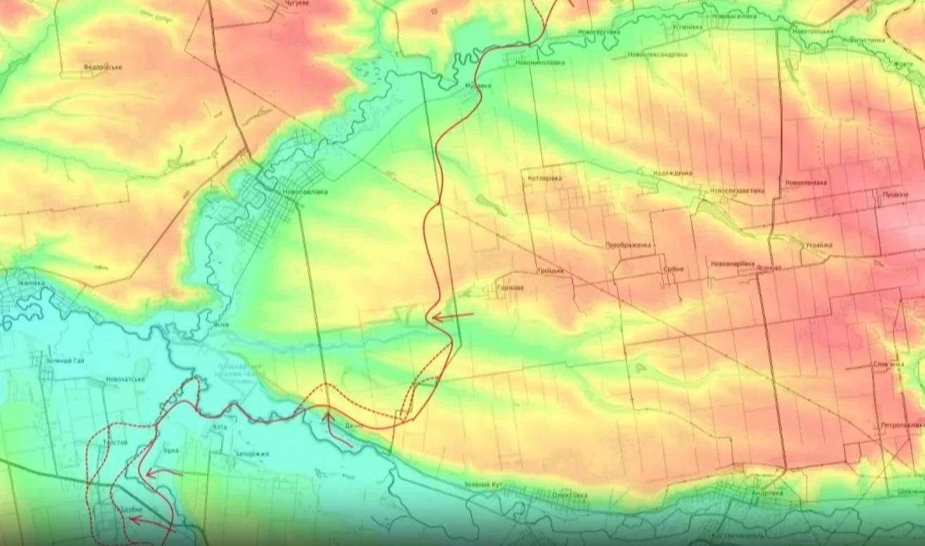"И далее, развивая свой успех, выбивают противника из лесопосадок западнее этих населённых пунктов. Одновременно с этим наши войска зашли в Мирный, ну и таким образом мы видим, что мы движемся по направлению к Зелёному Гаю, соответственно, далее мы должны занять полностью всю эту излученную реку Волчьей, ну и далее выходить в тыл и фланг группировки противника обороняющейся в Новопавловке, в которой мы также не спеша приближаемся с востока, а наши части 41-й армии пока ещё не начали своего наступления здесь, тем не менее потихонечку лесопосадки здесь переходят под наш контроль и я думаю что сражение за Новопавловку уже не за горами", - проинформировал Подоляка.