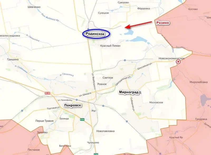 ВС РФ начали наступление на город Родинское, пытаясь перерезать снабжение гарнизона ВСУ в Покровске и Мирнограде