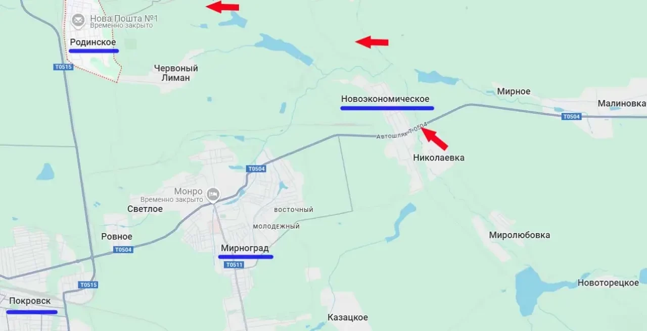 Такую тактику российские войска применили для перехода через реку Казённый Торец в районе села Новоэкономическое, что примерно в 6,5 км юго-восточнее Родинского.