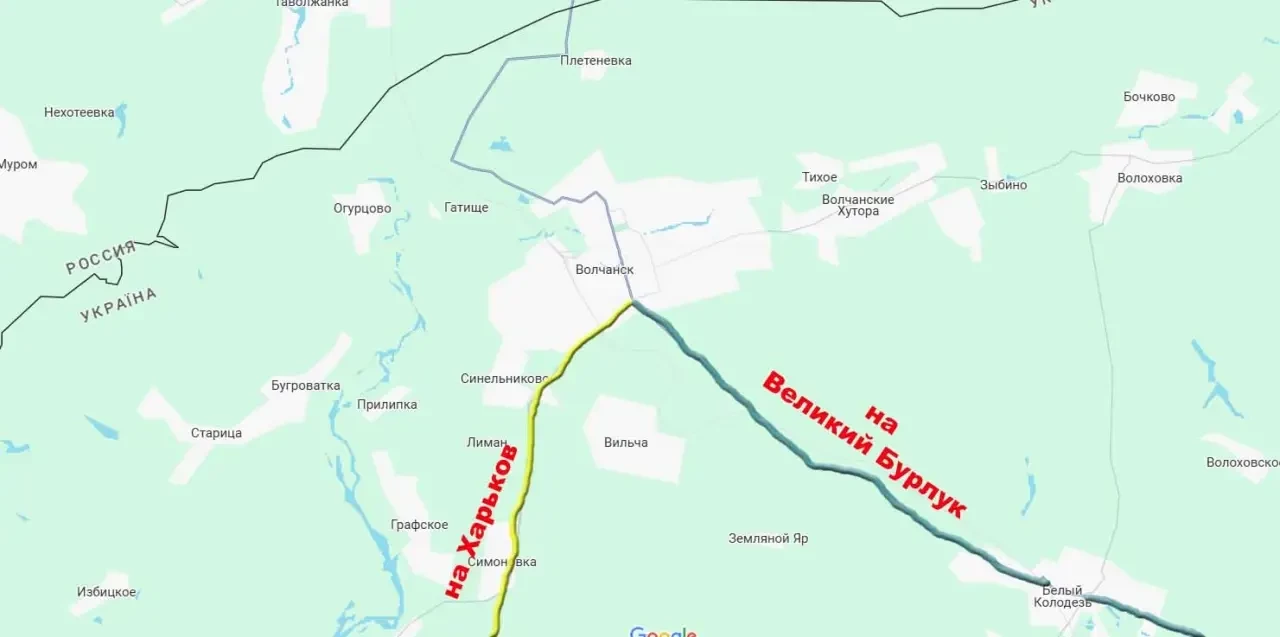 В случае развития успеха в южной части Волчанска наши войска могут взять как минимум под огневой контроль важнейшие для противника маршруты снабжения, включая дорогу на Старый Салтов и далее на Харьков, а также маршрут на Великий Бурлук.