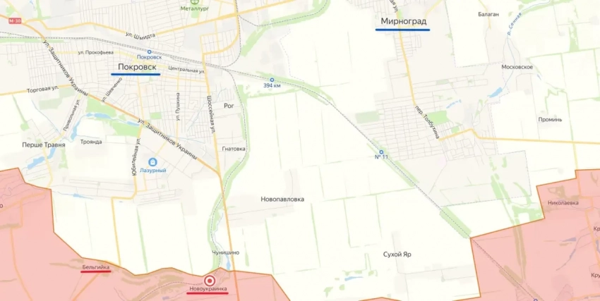В сегодняшней сводке Минобороны РФ сообщили, что наши бойцы освободили Новоукраинку. Это маленькое село расположено в трех километрах от Красноармейска на автотрассе Е50. Рядом находится и Бельгийка, которую освободили чуть раньше.