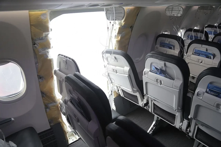 Этот рейс вылетел из Портленда, штат Орегон, 5 января 2024 года и направлялся в Онтэрио, штат Калифорния, когда на высоте около 4 800 метров от самолёта оторвалась дверь аварийного выхода, и в салоне произошла разгерметизация. Четыре члена экипажа (два мужчины и две женщины) получили физические и психические травмы, эмоциональный стресс.