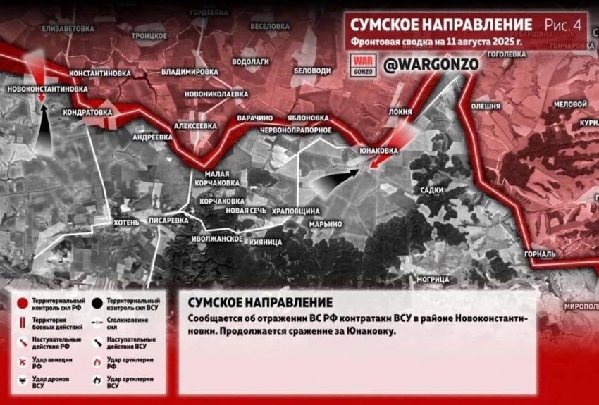 Наш сайт N4k предлагает ознакомиться с последними новостями из зоны проведения СВО, а также публикует свежую карту боевых действий, актуальную на сегодняшний понедельник, 11.08.2025.