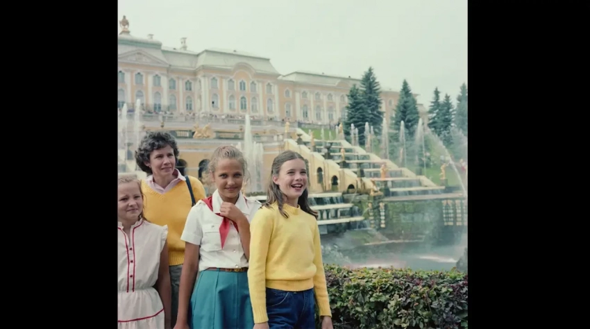 Американская школьница Саманта Смит, ленинградская школьница Наташа Каширина и мама Саманты Джейн Смит во время посещения Петродворца, июль 1983 года