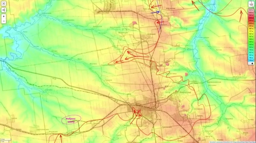 Одновременно с этим продолжаются тяжелые бои в Родинском, а также в районах населенных пунктов Удачное и Молодецкое. Намечается и новый вектор атаки из района Котлино в направлении шахты «Южно-Донбасская №3». Успех на этом участке открывает прямой путь к окружению всей Покровской агломерации.
