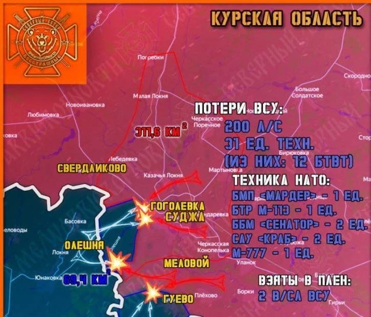 Общее продвижение Северян в Курской области составило свыше 2900 метров, уничтожено 12 единиц вражеской бронетехники.
