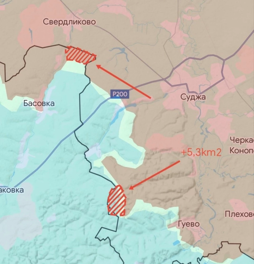 В районе пункта пропуска «Суджа» также идут вязкие тяжёлые бои, ВСУ активно обороняют трассу на Юнаковку.