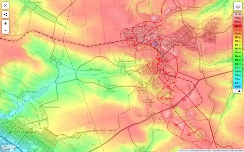 В свою очередь на ЧасовЯрском направлении продолжаются ожесточённые боевые действия, в ходе которых российские бойцы атакуют противника. В частности, они заняли позиции севернее города. Ожесточённые бои также ведутся за Ступочки.