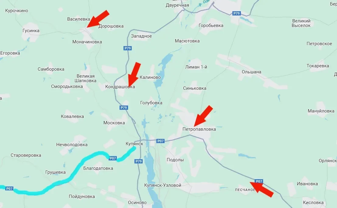 И в такой ситуации, по сути, единственной крупной транспортной артерией для снабжения купянского гарнизона остаётся дорога Р07, соединяющая Харьков с Купянском. С её перерезанием тот самый купянский гарнизон ВСУ окажется в котле.