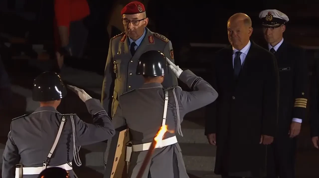 В данном случае мероприятие продолжалось час и пятнадцать минут, были военные приветствия, торжественные речи со стороны Министра обороны Бориса Писториуса и самого виновника торжества, но ни о каком «прощении» за то, что стало со страной Германией за последние четыре неполных года, пока Олаф Шольц находился во главе страны, речи не было.