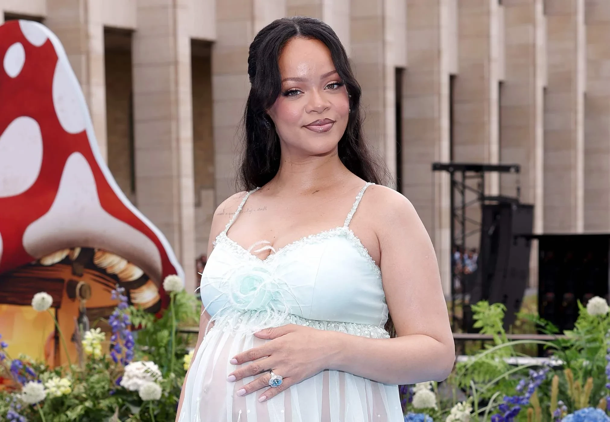 37-летняя Рианна, которая сейчас ждёт ребёнка от своего возлюбленного A$AP Rocky, посетила премьеру фильма "Смурфики в кино" в Брюсселе.