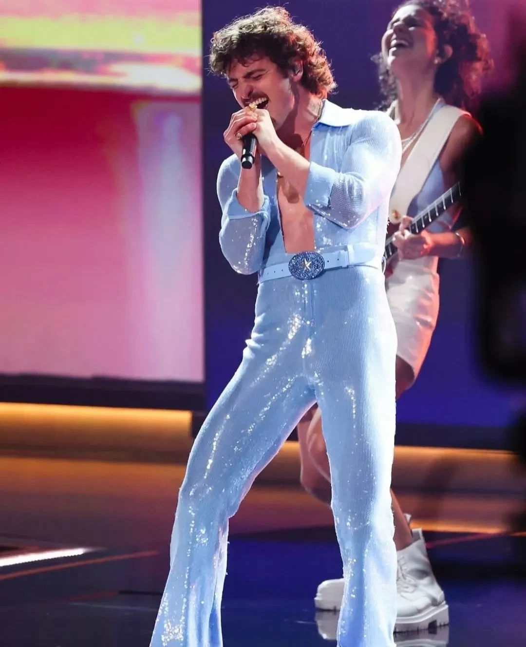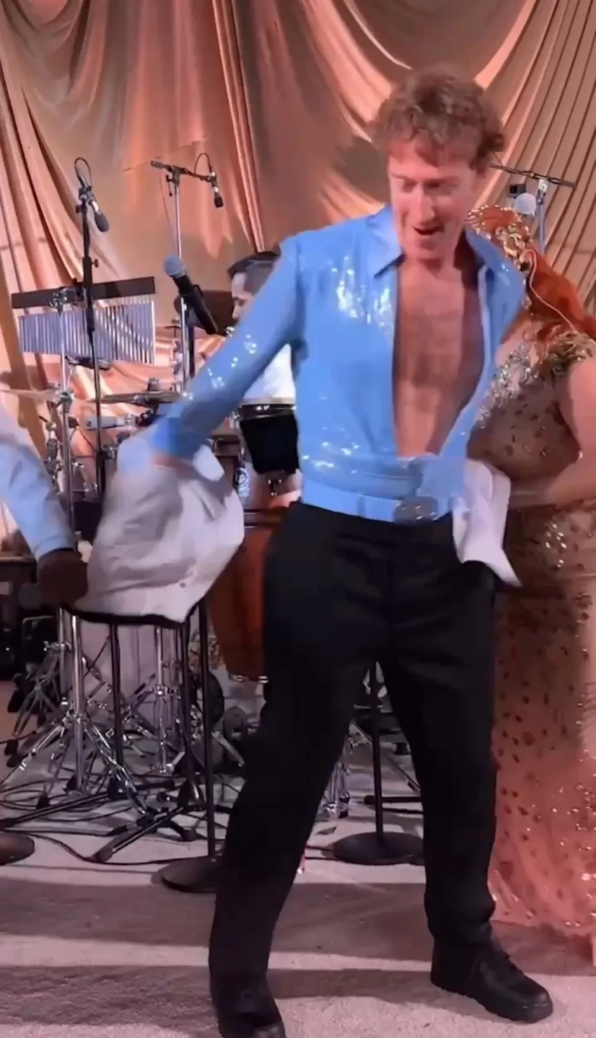 Голубое трико в блестках: Марк Цукерберг повторил вирусный номер Бенсона Буна на юбилее жены