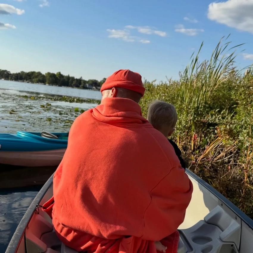На снимке 31-летний Джастин позировал в лодке с сыном на руках, повернувшись спиной к фотографу. На фотографии не появилась жена Джастина Хейли, но, судя по всему, именно она сделала этот кадр.