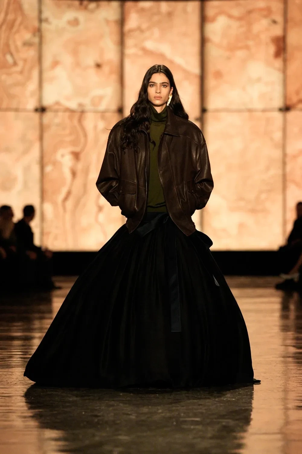 По подиуму прошлись Белла Хадид и обладательница титула "Модель года — 2024" Анок Яй, которые пропустили весь сезон и вышли только на шоу Saint Laurent. Анок перед показом сменила имидж и побрилась налысо.
