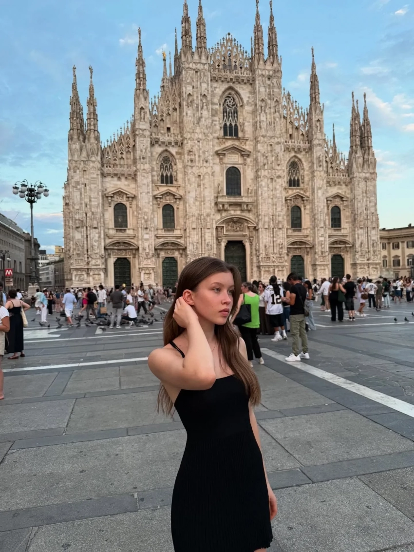 На фото Анна позирует как одна, так и с 40-летней мамой: на фоне достопримечательностей Ватикана, Милана, Флоренции и просто колоритных улочек. Для прогулок она выбрала белый кардиган с глубоким декольте, чёрное мини-платье на бретелях (и без них), а также комплект в трендовый горох.