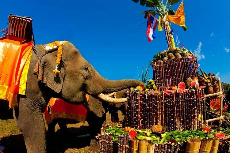 Самым ожидаемым моментом для слонов становится раздача сладких фруктов, которые готовят заранее и собирают в огромных количествах. Среди угощений — ананасы, арбузы, яблоки, груши и даже кукурузные початки, которые помещаются в большие ледяные кубы, создавая зрелище, которое привлекает внимание как гостей праздника, так и самих слонов.